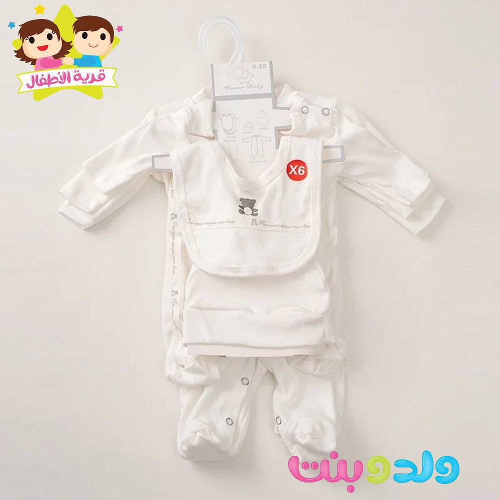 اختاري ملابس طفلك بكل عناية ، أطقم قطنية للأطفال حديثي الولادة ، مكون من 6 قطع، متوفر بثلاث ألوان ، جودة عالية ، متوفر نمر (0-3) (3-6) (6-9) .