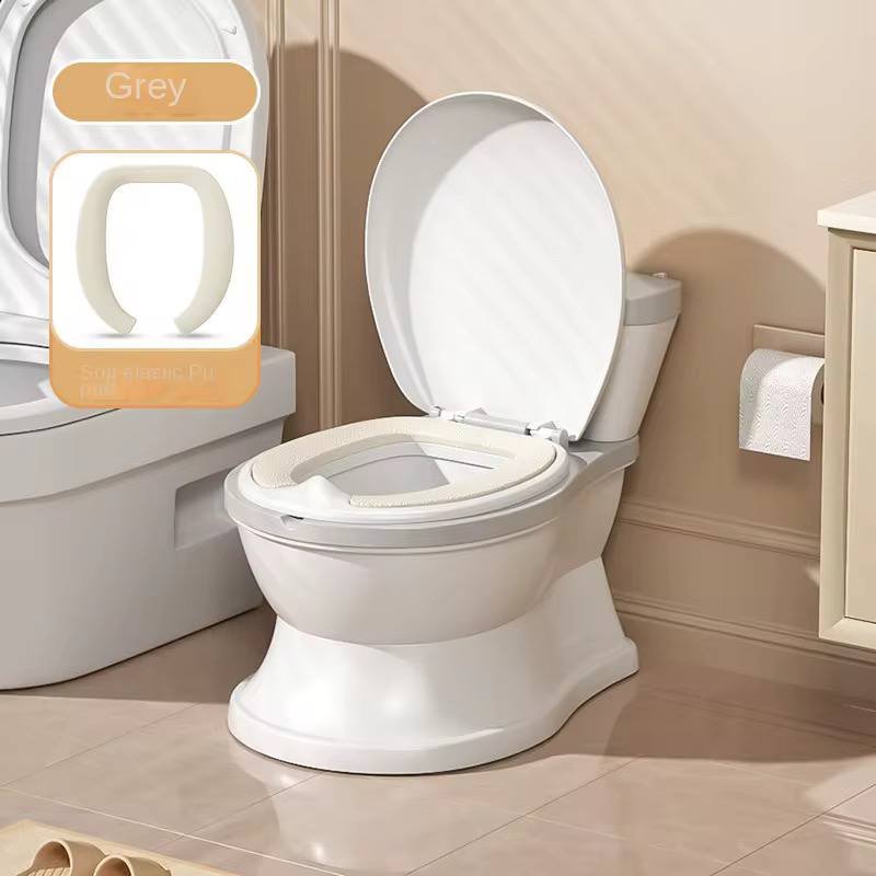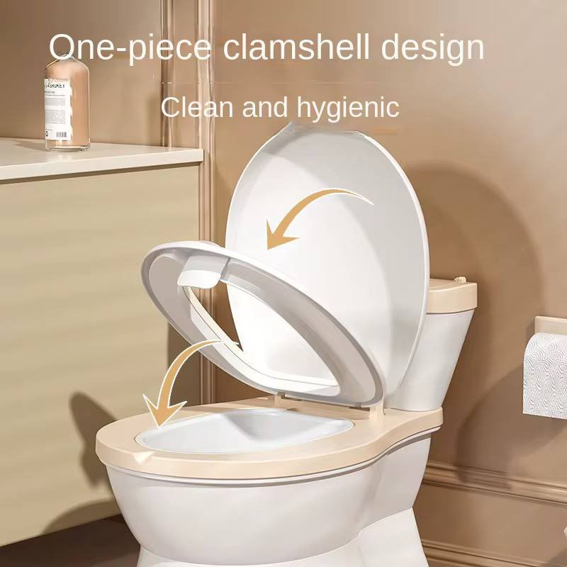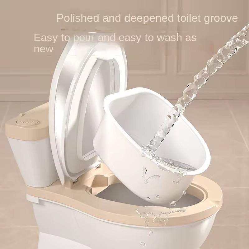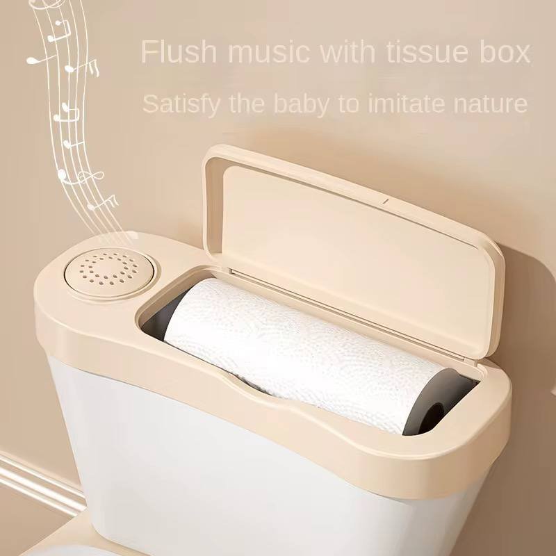 • تصميمه يشبه المرحاض الحقيقي ليشجع الطفل ويتعود بسهولة.